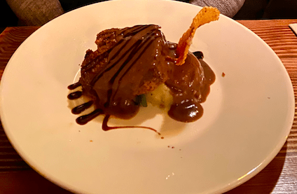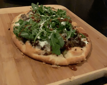 We went to the Raven Bistro for dinner. As the appetizer, we shared the bison and boar belly flatbread.