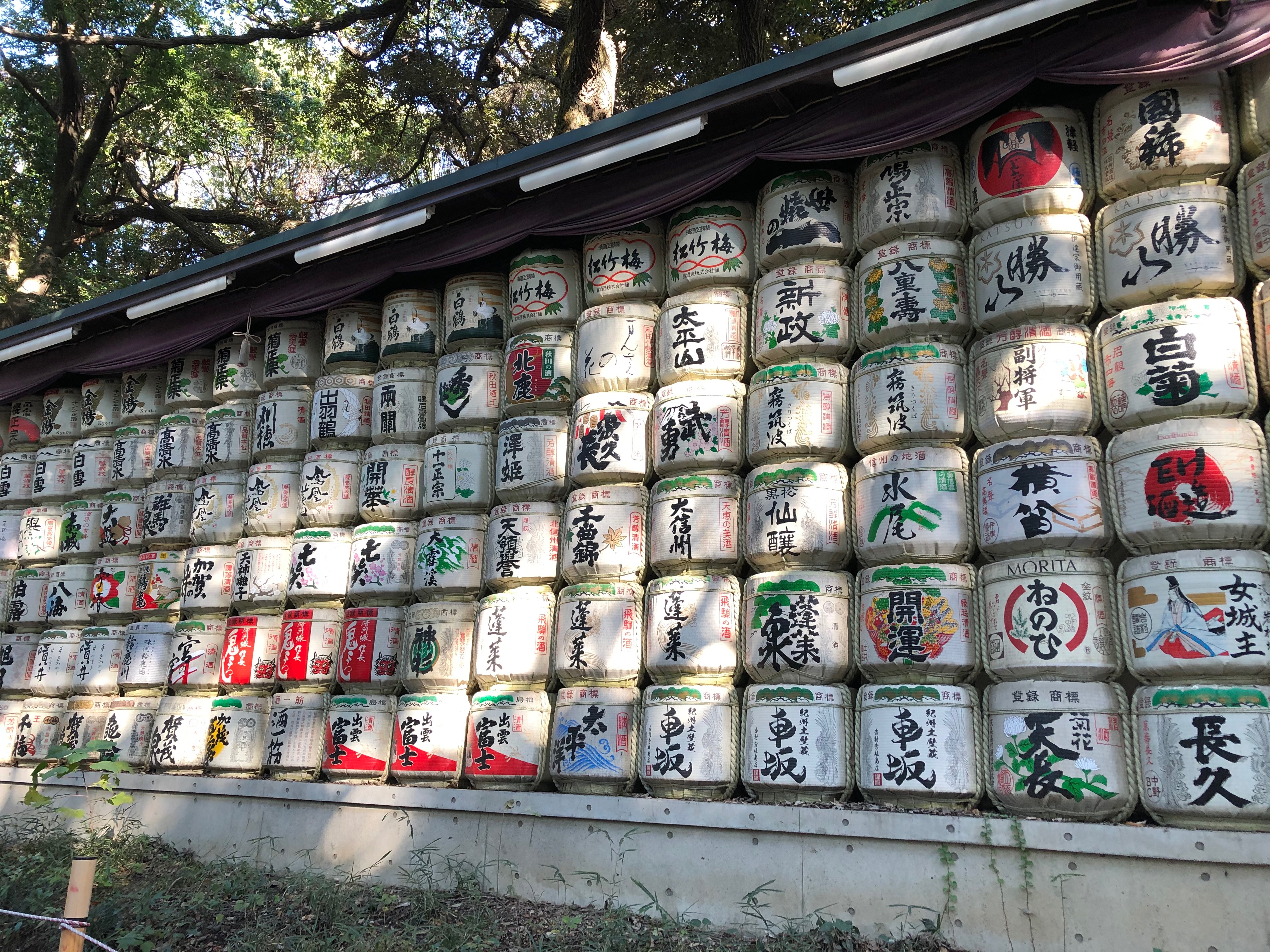 We stopped by the Krispy Kreme around the corner to grab dessert before heading off to Meiji Shrine in Yoyogi Park. We decided to walk because the weather was nice (about 30 minutes) and the train did not save us a whole lot of time. As we made our way to Meiji Shrine, we passed by sake barrels stacked one on top of the other. It is intriguing to see these enormous parks and historical shrines located in the middle of a mega-city like Tokyo.
