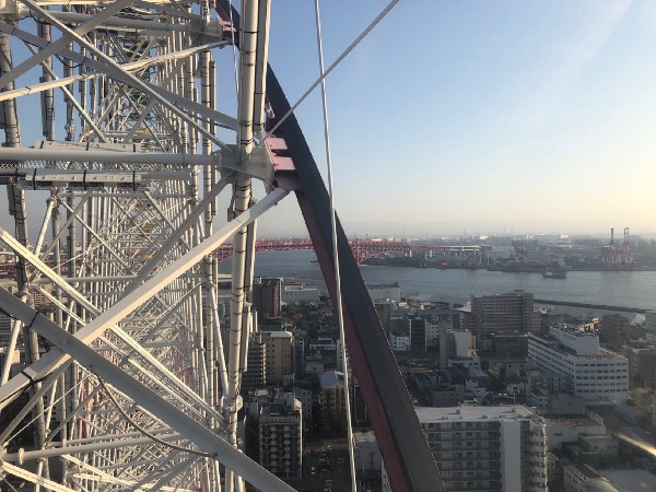 We flashed our OAP at the Tempozan Giant Ferris Wheel entrance, and were asked if we wanted a normal cabin or a glass floor cabin. We did not want to wait the 30 minutes for the latter (we wanted to get as much done before the next Santa Maria sailing) and opted for a normal cabin. We boarded almost right away. With a max height of 113m, the view from the top of the ferris wheel offered a stunning view of the bay and the city.