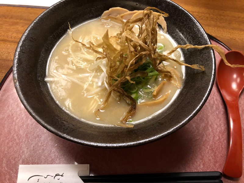 Kyoto Gion Ramen Muraji is known for its chicken-base ramen. I ordered their shio ramen, which was fantastic. It is a bit hidden and yet, a pretty popular spot. There are a few bars seats and two family style tables that could seat about 8 people each. We waited about 5 minutes to be seated. It looked like we just beat the dinner rush, as the wait was at least 30 minutes when we left.