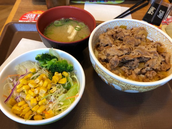 Our next stop was the Kyoto Imperial Palace. We stopped at the Sukiya across from the palace for a late lunch. Sukiya is a Japanese fast food chain popular for its gyudon. The meal came with a bowl of miso soup and salad.