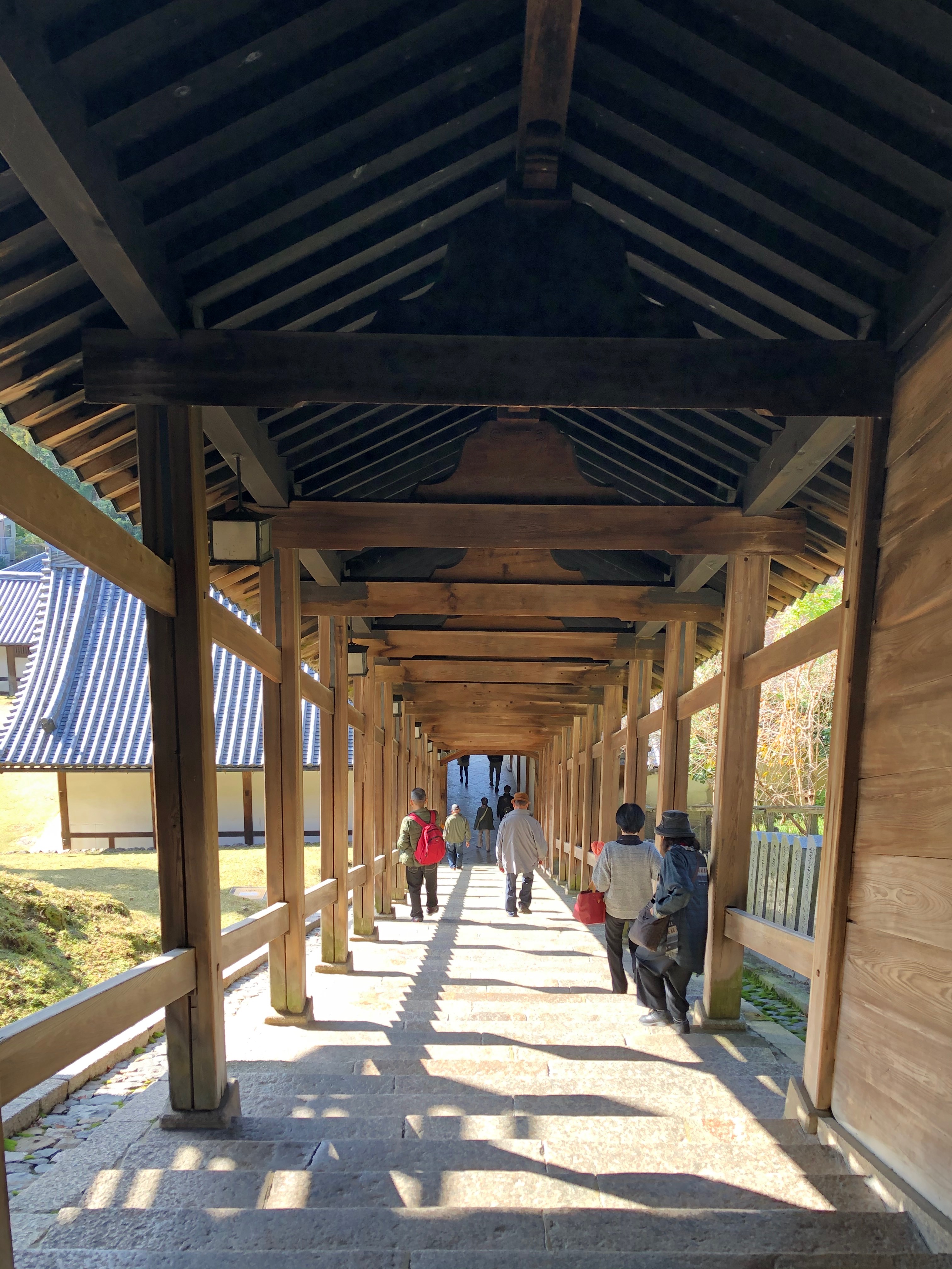 After a 10 minute walk, we reached Nigatsu-do. We walked up the covered pathway to reach the main area of the temple. The view of Nara Park was nice.