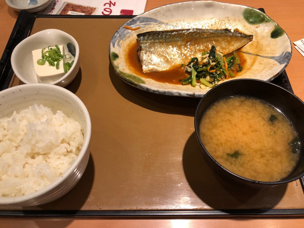 The morning air was chilly. We grabbed breakfast at Yayoiken Nippombashi, just outside the Kintetsu-Nippombashi Station. They serve traditional Japanese fare. Upon entering, we purchased a meal ticket at the machine and sat down at a booth. The service was quick. I ordered the miso simmered mackerel, which came with a bowl of rice, miso soup, and a cube of tofu. A healthy start to the day!