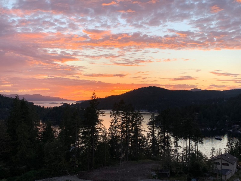 We headed back to the Airbnb and walked to dinner at the Grasshopper Pub (less than a 5 minute walk), located in the Pender Harbour Hotel in Madeira Park. I ordered the cottage pie with the house salad and enjoyed a glass of moscow mule. The cottage pie portion was huge! The beautiful sunset colours radiated in the background as we enjoyed our dinner.