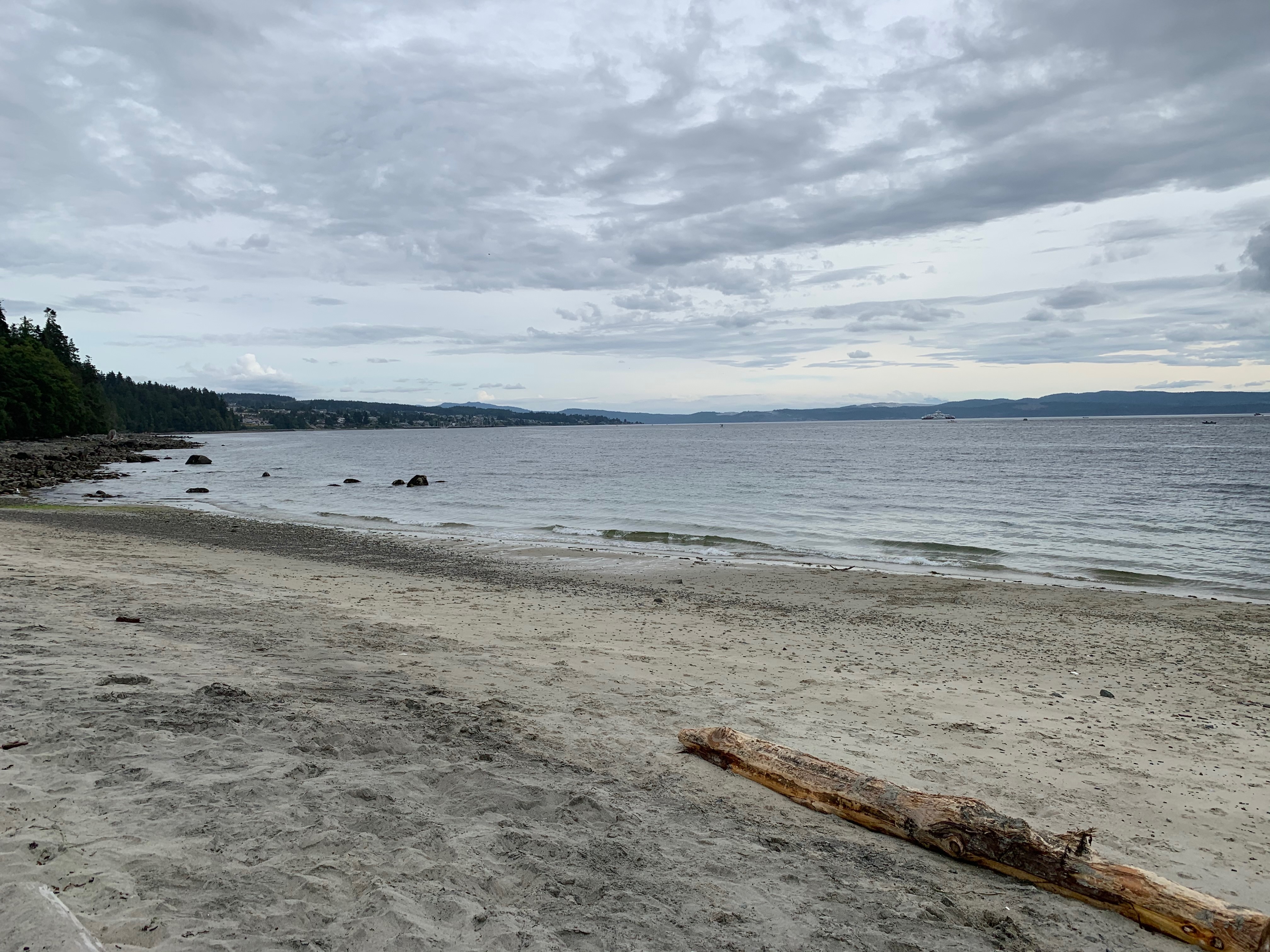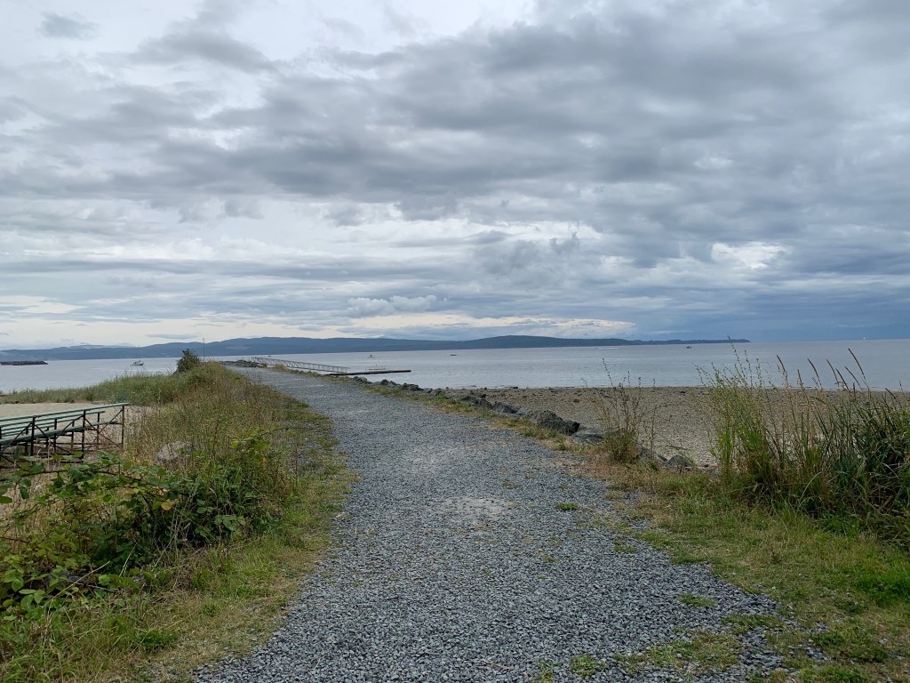 The weather was beginning to cool off and there was a slightly chilly breeze. We walked along the pathway out to the water at Willingdon Beach.