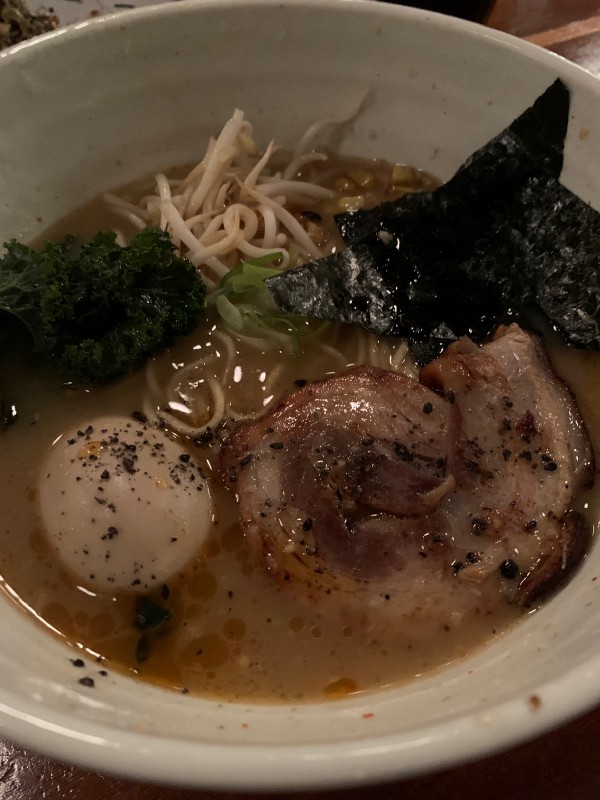 We headed back to Kuma Tofino for dinner. Kuma Tofino specializes in Japanese comfort food. Ramen sounded like a great idea after our walk. We ordered chicken karaage, okonomiyaki, and tonkotsu ramen to share — yum! I also ordered a Tofino Brewing Company Lager to enjoy with my meal. What a perfect way to end the evening!