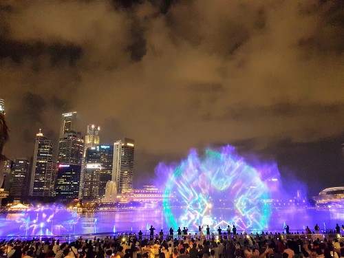 We headed to the Event Plaza at Marina Bay Sands to watch another free light show called Spectra — A Light and Water Show. This 15 minute outdoor show also occurs every evening at 8pm and 9pm (as well as 10pm on Fridays and Saturdays).