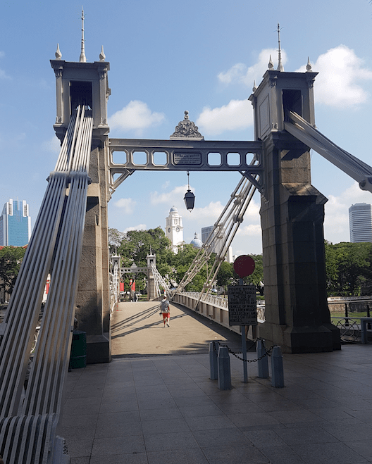 We continued to the Cavenagh Bridge to cross the Singapore River. The Cavenagh Bridge opened in 1869, making it not only the only suspension bridge in Singapore, but also one of the oldest bridges in Singapore.