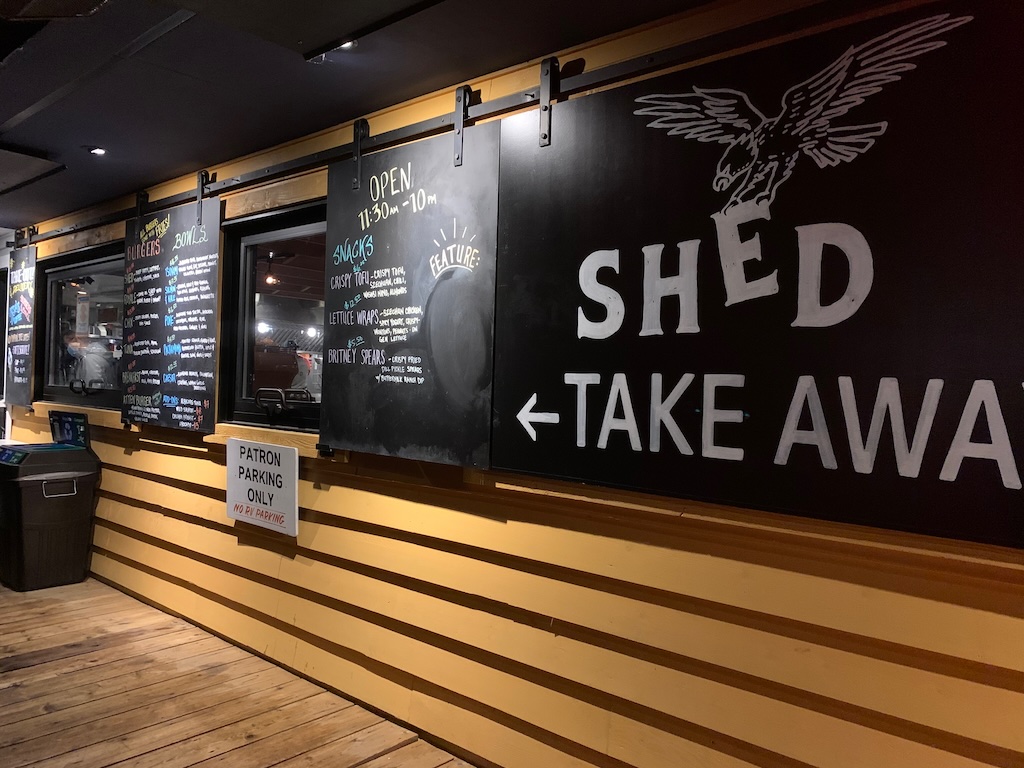 8:00pm: Pick up dinner from Shed (3 minute drive from Tofino Brewery).