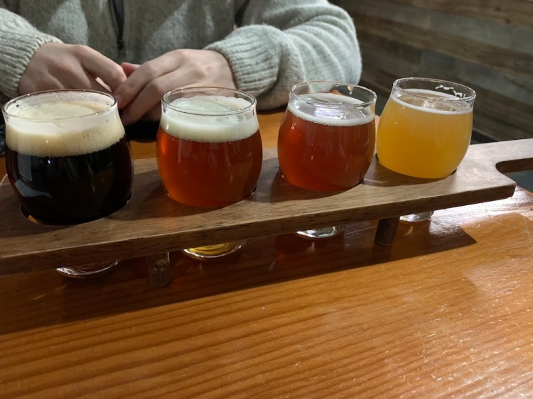 Next stop – the craft breweries! There are three breweries located in Kamloops downtown within a five minute walk from each other – Noble Pig Brewhouse, Alchemy Brewery, and Red Collar Brewing Co. First brewery on the list was Noble Pig Brewhouse. We each ordered a flight of 3 beers and shared an order of intergalactic pretzels, which came with galaxy hop salt beer mustard. I ordered the Munich Helles Lager, Belgian Pepper Ale, and the Mocha Porter for my flight.