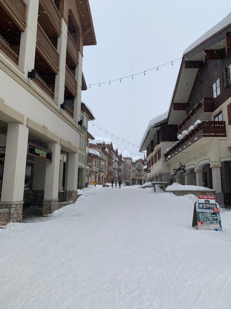 I stuck to the green level trail – Homesteader – but my my friend was an advanced skier and went down a few of the black diamond level trails. I really liked the Homesteader, it was narrow and flat at the beginner but widens up as it gets steeper – a good run to practice carving and technique!
