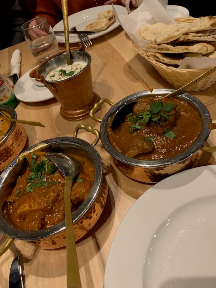 To end our day, we chose Maurya’s, an Indian restaurant, for dinner. We ordered the Chicken Tikka Masala and the Lamb Curry. The meal came with rice and we also got naan bread (regular and garlic). We contemplated spice levels, so the restaurant brought out their house-made hot sauce and raita (mixture of yogurt and cucumber) on the side. The raita was in case we added too much hot sauce to our meal, but was also very good as its own sauce! The meal was so flavourful and delectable!