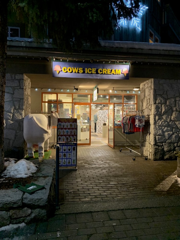 8:00pm: Go for an evening stroll in Whistler Village. Stop at the Olympic Plaza to see the Ice Skating Rink and the Olympic Rings (5 minute walk from Pasta Lupino). Pick up ice cream from COWS ice cream (4 minute walk from Olympic Plaza).