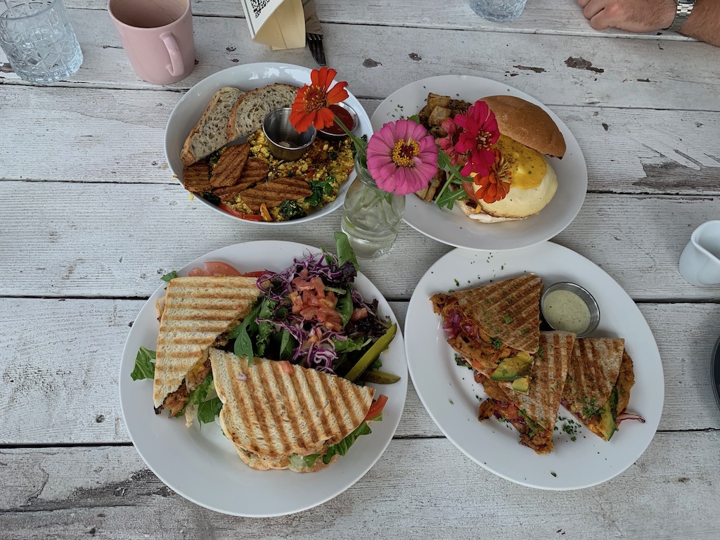 After a long drive, we finally arrived in Lake Country and we were starving! We met up with some friends for lunch at the Salty Caramel Kitchen. The Salty Caramel Kitchen is a plant-based cafe with a selection of baked goods, coffee, tea, and an assortment of lunch options. We ordered coffee, the scrambled bowl, the fried egg sandwich, the chick’n bacon ranch sandwich, and the buffalo chick’n quesadilla (top left to bottom right). The food was very tasty!