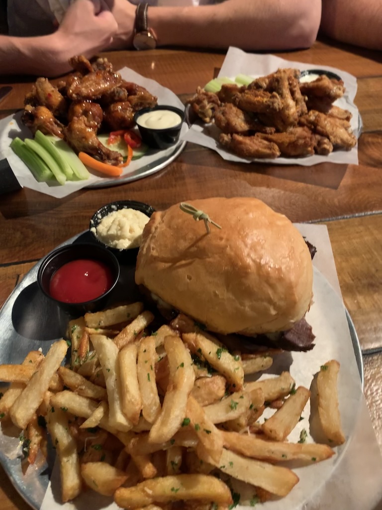 We then headed to dinner at Marten Brewing, a craft brewery located in downtown Vernon. We visited on Wings Night Wednesday, their special was 1 pound of wings for $7.50. I ordered the brisket and bread with truffle fries, and he ordered wings. This was more than enough food for the two of us. For drinks, we shared a flight of beer – yum! It must have been a busy day for them, as some of their beers were sold out.