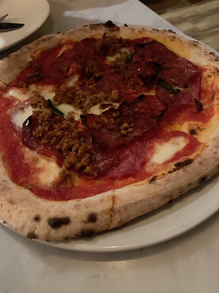 It was getting close to dinner time, so we walked to dinner at Antico Napoletena. Antico Napoletena is a top rated pizzeria. It has an easy going structure. We ordered at the front and took our number to the table of our choosing. The food came out quickly – first the antipasto mild and then the carne-val pizza.
