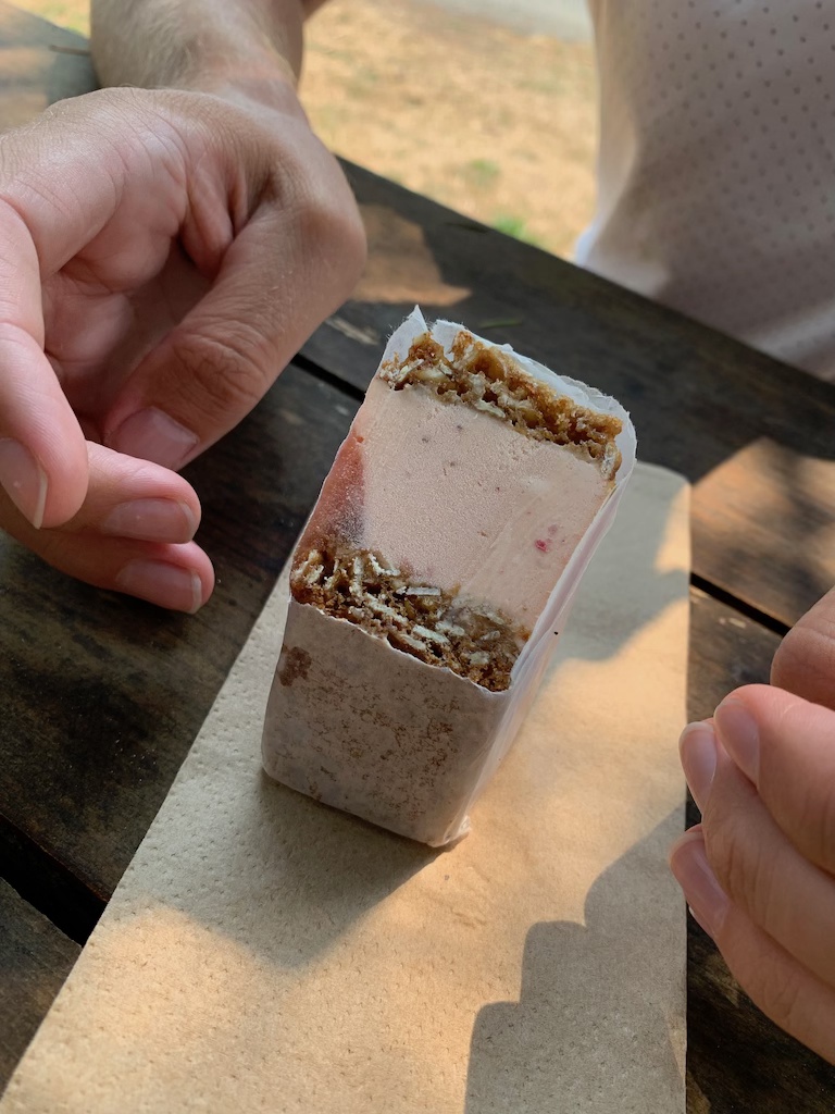 After lunch, we headed to Sea Chest in Sooke for ice cream. Sea Chest is a small seaside stall which sells homemade ice cream sandwiches. We picked the strawberry rhubarb with granola cookie. It was an extremely hot day, so the ice cream was very refreshing!
