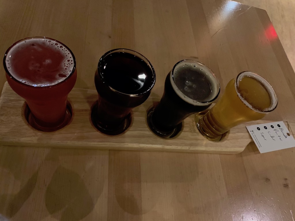 Next, head to White Sails Brewing for an evening drink. White Sails Brewing is an award-winning brewery which opened in 2015. We shared a flight – blonde, porter, cider, and sour.