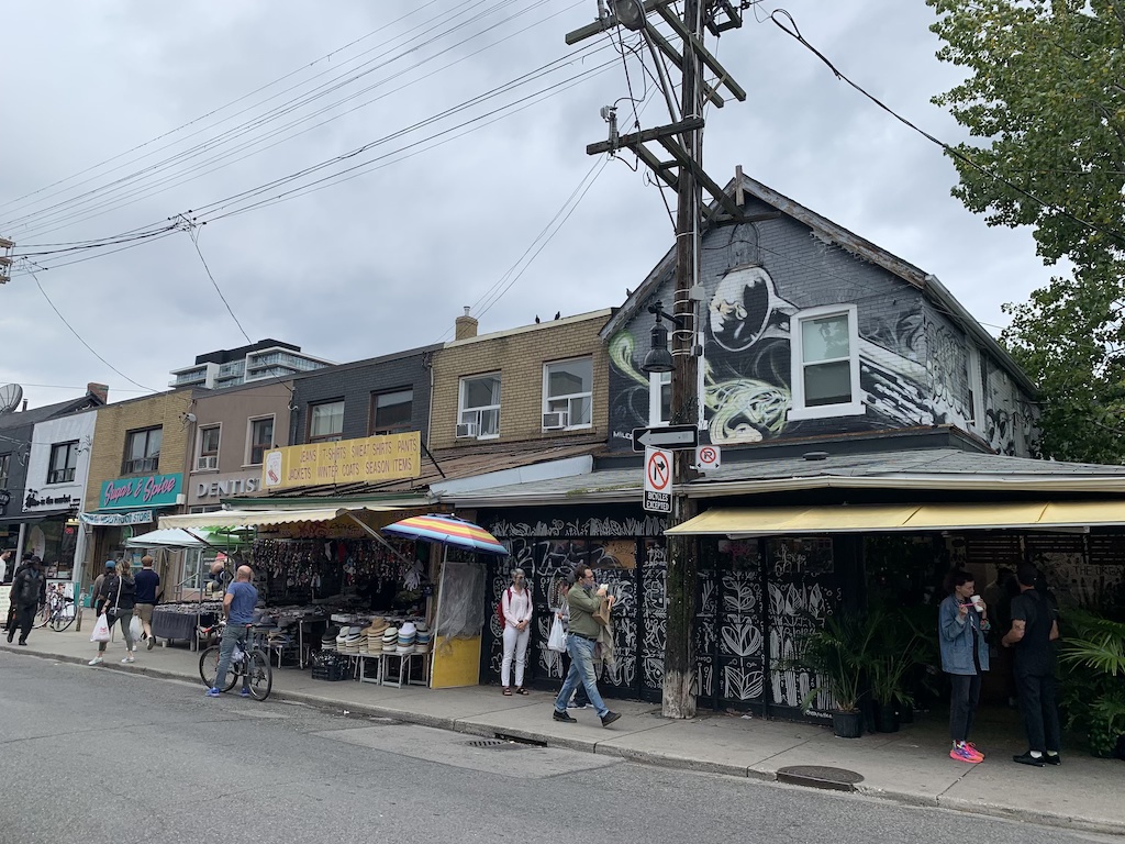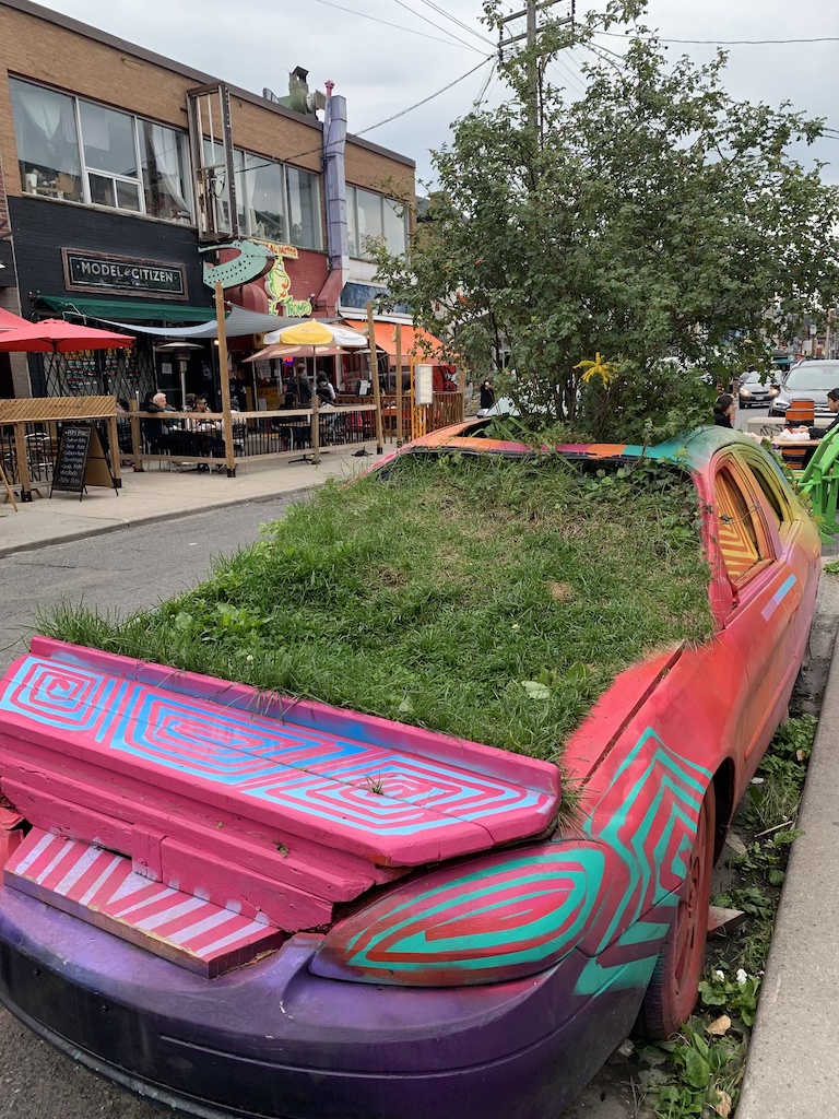 I had pancakes for breakfast, which my friend graciously made for me. After breakfast, we headed to Kensington Market. Kensington Market is a vibrant area close to Chinatown and is popular for its art spaces and boutique shops. There was a small outdoor market hidden away in one of the alleys during my visit. Another interesting attraction is the Garden Car, which is exactly as it sounds – a garden in a car.