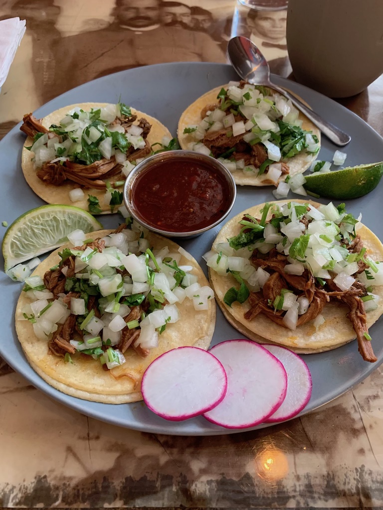 We headed to Tres Carnales Taqueria for lunch. I ordered 4 al pastor tacos, which came with their house hot sauce. The tacos were good, but they do not let you mix and match your tacos.