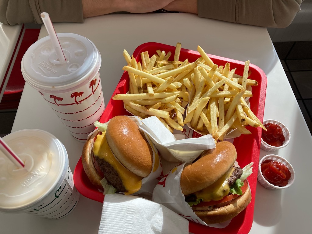 11:00am: Pick up In and Out Burger for lunch on the way out of San Francisco (25 minute drive from Christmas Tree Point).