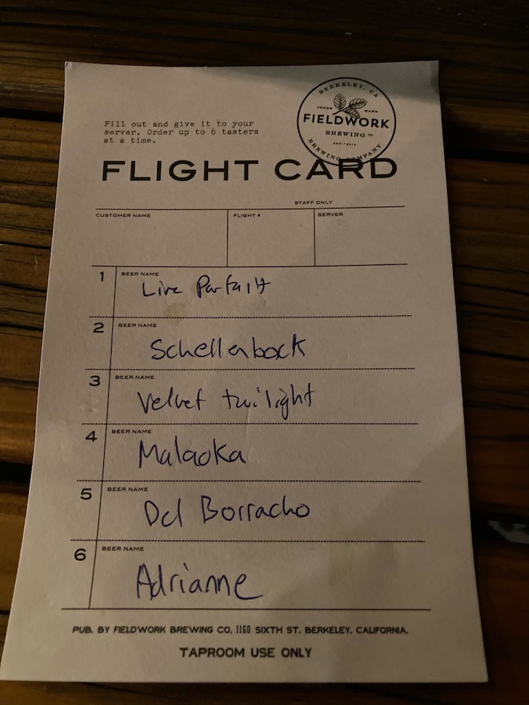 6:00pm: Have a drink at Fieldwork Brewing Company (5 minute drive from Hula’s Island Grill).
