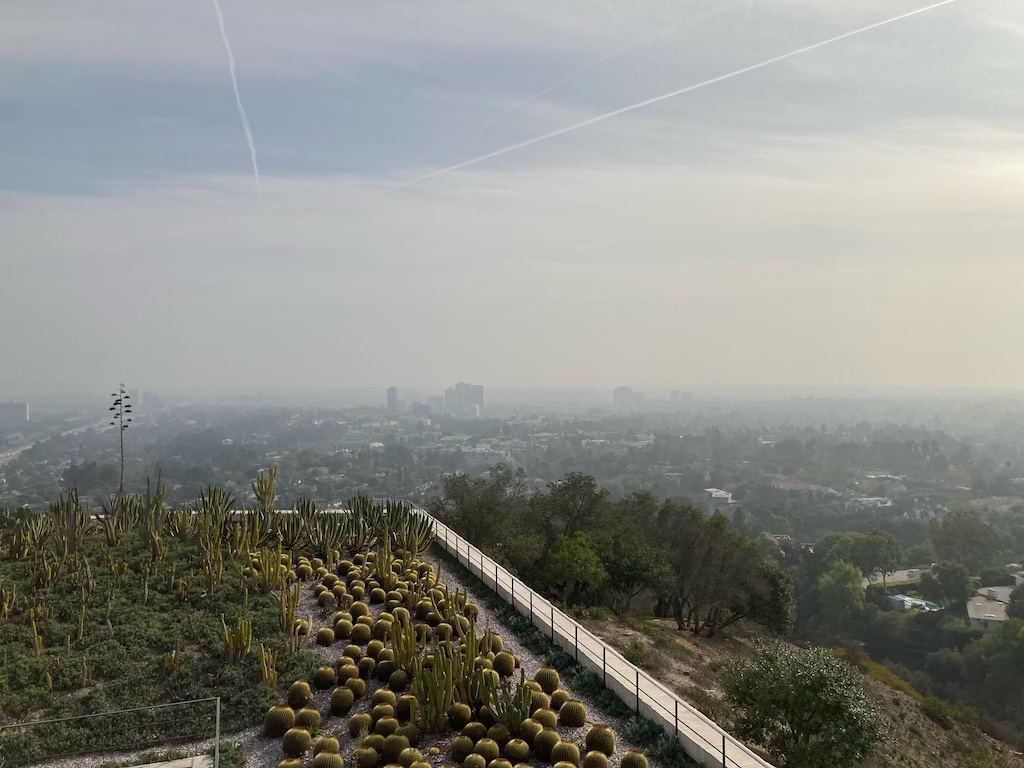 We were not hungry, so we skipped breakfast and headed straight to the Getty. The Getty is an art museum at the top of a hill overlooking Los Angeles. The museum itself is free, but parking is $10/vehicle. From the parking lot, you need to take a tram up the hill to the museum. It is a great spot not only for the art, but also for the views, architecture, manicured lawns and gardens. I definitely recommend visiting.