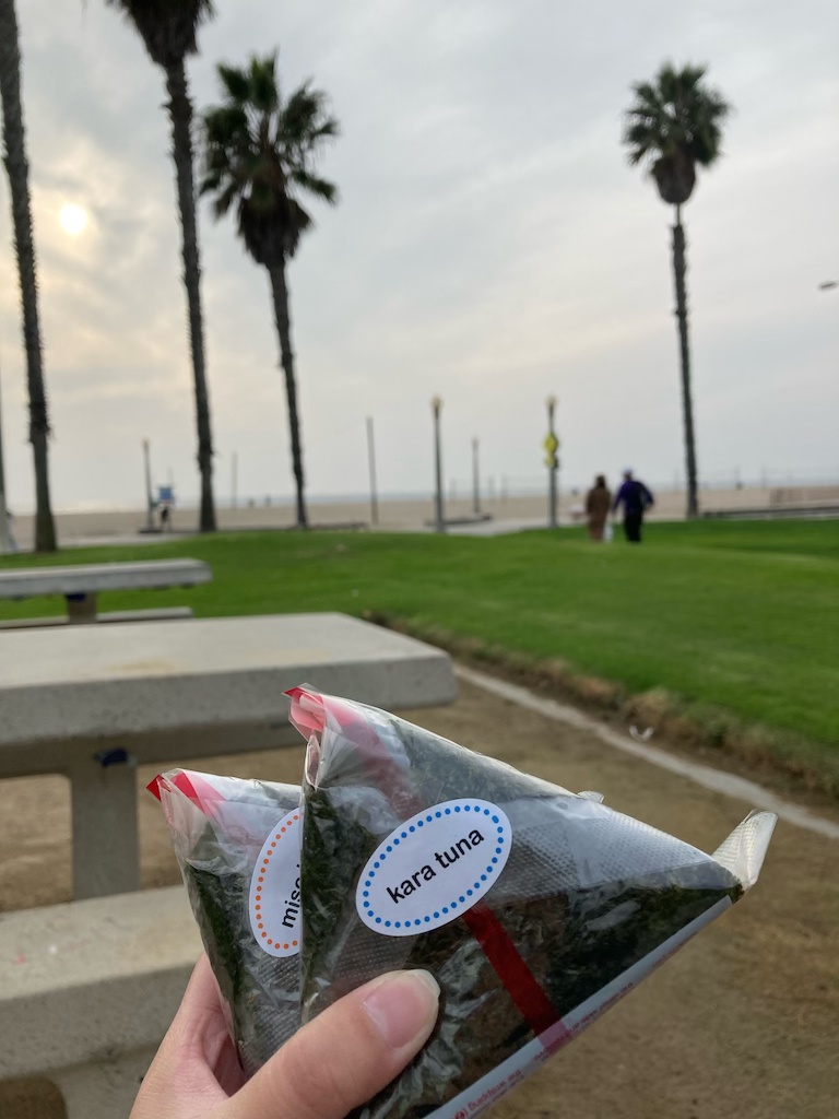 12:00pm: Grab some onigiri at Sunny Blue (17 minute drive from the Getty) and eat it at the Santa Monica State Beach.