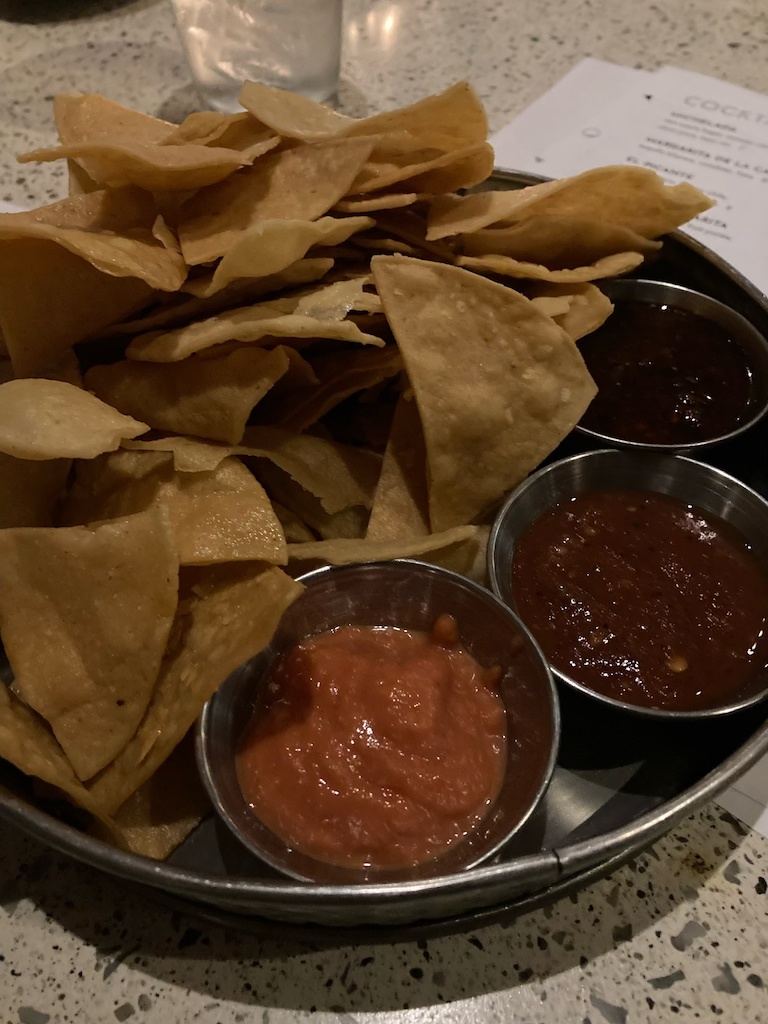 We then checked in at our hotel and had happy hour at a bar across the street called Socalo. Socalo specializes in Mexican food and drinks – we ordered the chips and salsa to share and I selected the El Picante cocktail. The salsa felt more like chilli sauces than salsas, but they were still good.