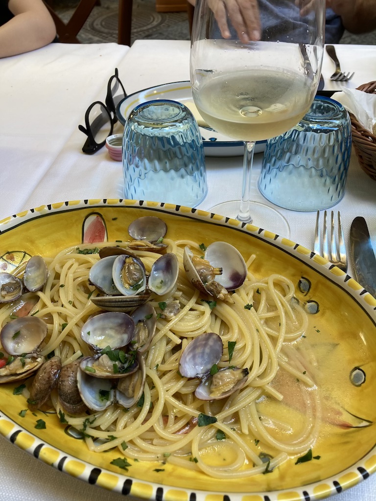 After the cathedral, it was time for lunch at Osteria dei Mercanti. I ordered the spaghetti alle vongole (spaghetti with clams) and a glass of white wine. The pasta was al dente and delicious. For dessert, we walked to Giallo Limone for gelato! I ordered the lemon gelato – yum!