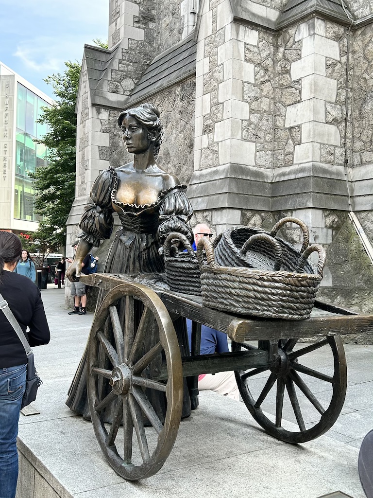 Along the way to the Trinity College, I passed the Molly Malone Statue. Molly Malone is a fictional character who sold fish and died young due to a fever. There is an Irish song called “Cockles and Mussels” based on her.