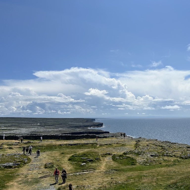 Day 3 was mainly a day trip to the largest of the three Aran Islands – Inis Mor. The views of Inis Mor are familiar as parts of the film “Banshees of Inisherin” were filmed on Inis Mor. The island has just over 800 inhabitants and the primary language is Irish (also called Gaelic). The other two islands in the area are Inis Meain and Inis Oirr. Between April and September, there is a direct ferry between Galway and Inis Mor. This ferry is ran by the Aran Island Ferry company. During the off seasons, visitors will need to detour to Rossaveel to take the ferry to Inis Mor. There are buses that go to and from Rossaveel, which is also ran by Aran Island Ferry. Visitors can also visit Inis Meain and Inis Oirr using the same ferry company.
