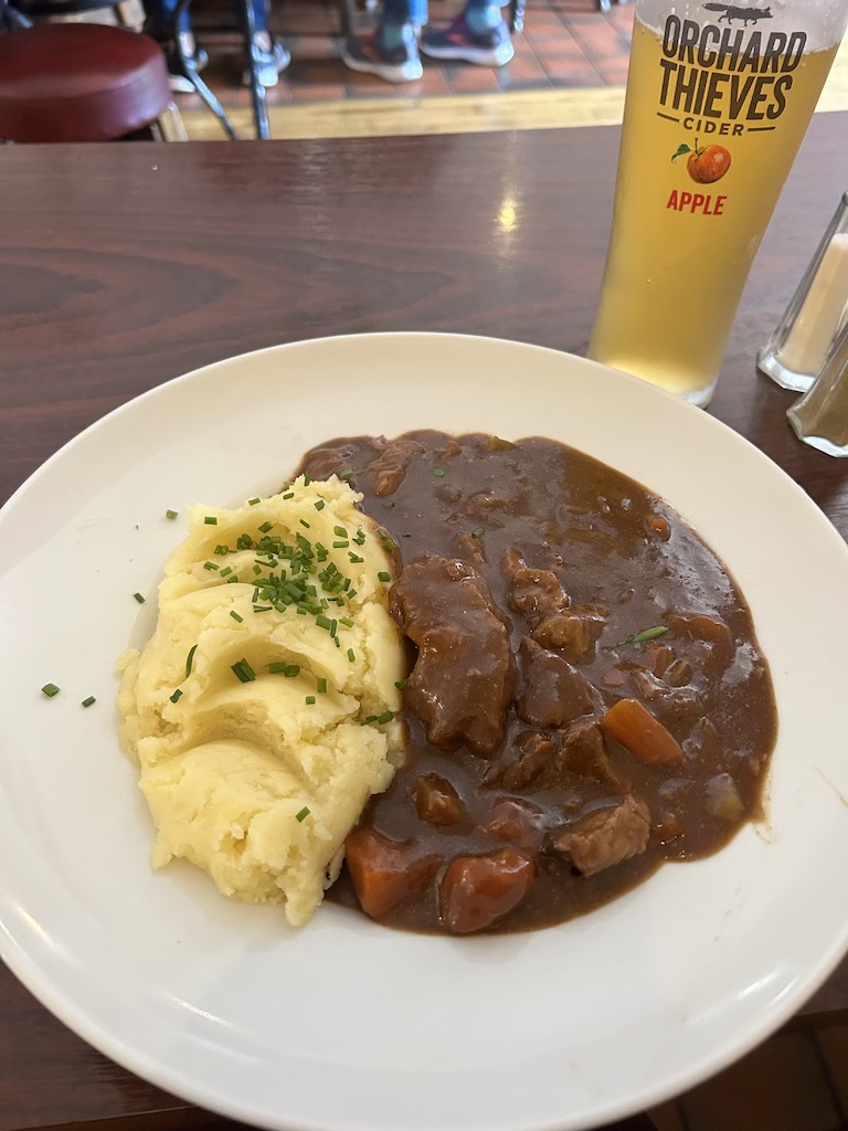 I was famished, so I headed to Gus O’Connor’s Pub for lunch. I ordered a pint of cider and a bowl of the Guinness Stew. The cider was refreshing especially on such a hot day! The Guinness Stew was filling and delicious as well.