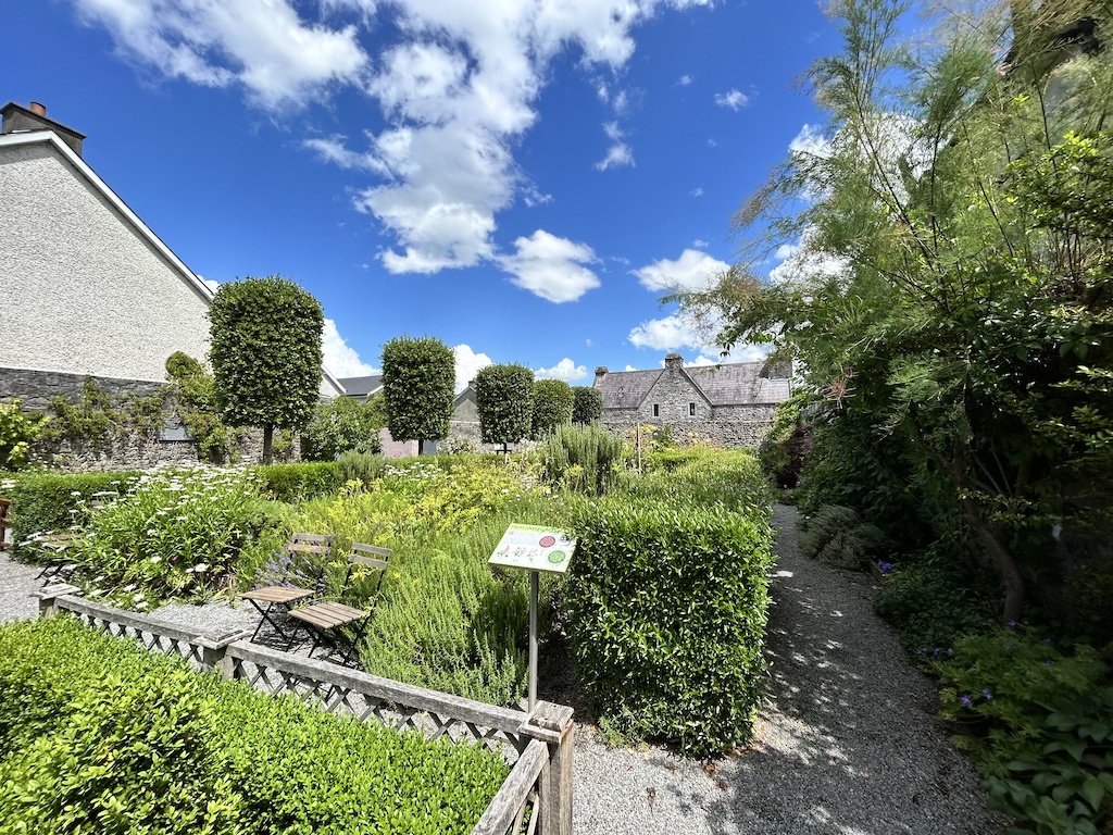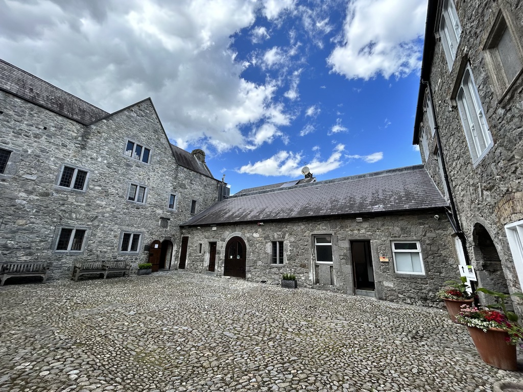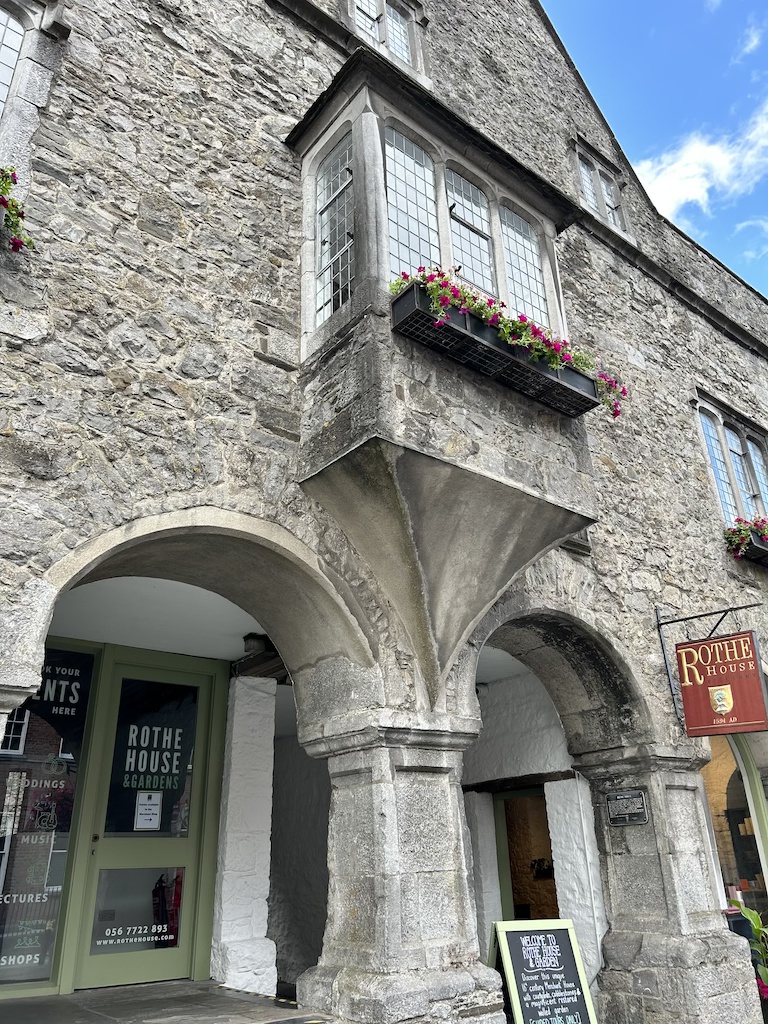 I walked along the Medieval Mile Trail to the Rothe House and Garden. The Medieval Mile Trail is the street that goes through Kilkenny from the Kilkenny Castle to the St. Canice’s Cathedral and Round Tower. The street has loads of history with many stores scattered along the streets. The Rothe House and Garden is on this trail and was once the home of another of the major families that once lived in Kilkenny – the Rothe Family. The admission fee is 8.50euros/person. It has three houses originally built in the early 1600s, three courtyards, and a garden. The garden is well maintained and preserved to look like it did in the 1600s.
