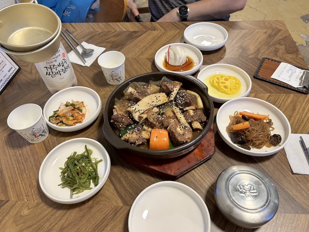 We picked a restaurant for dinner called Hwangnam Gyeongju Sikdang. We ordered their specialty – beef short ribs – along with makgeoilli. The beef short ribs were delicious, so tender and flavourful. Makgeolli is a Korean rice wine and our absolute favourite thing to drink in South Korea.