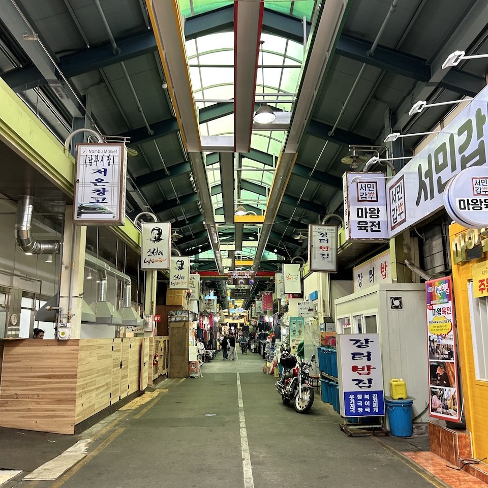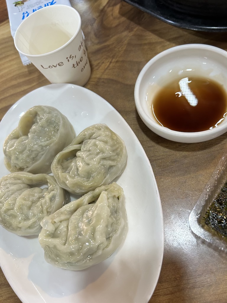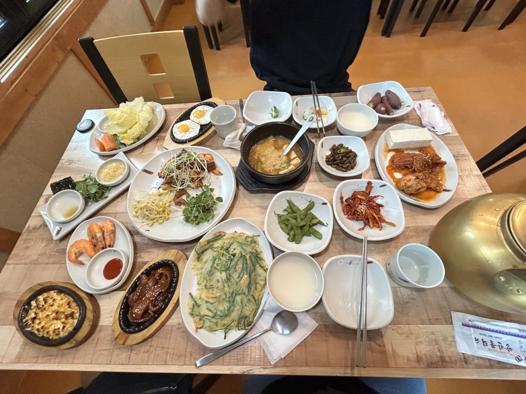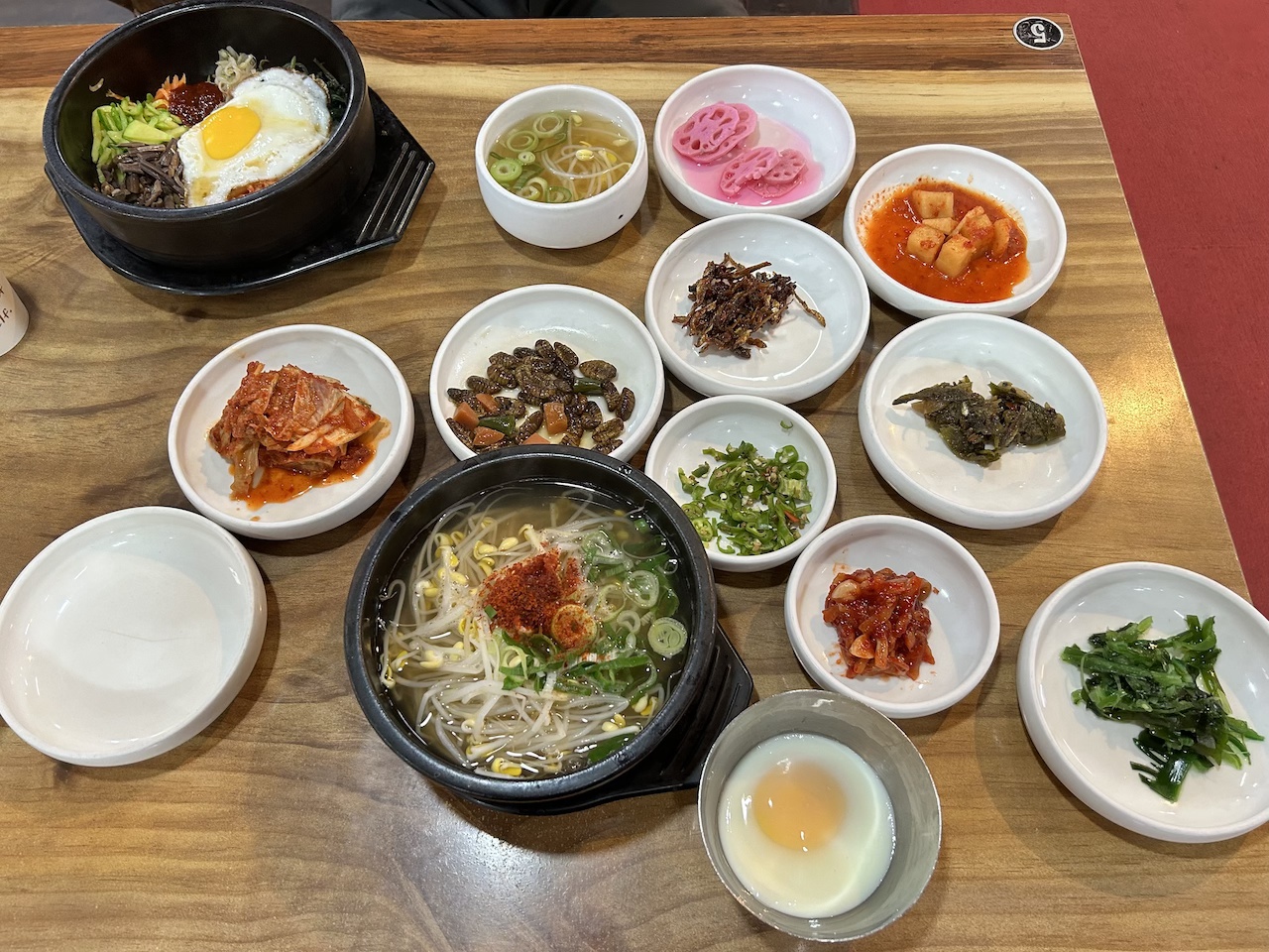 Afterwards, we walked to 동문원 콩나물국밥 for lunch. We were early for lunch and were the only people in the restaurant initially, but as it got closer to lunch, more and more people (including locals) came. We ordered the kongnamul gukbap (soybean sprouts soup with rice), bean sprout bibimbap, and mandu. One of the side dishes was silkworm pupae. He was courageous and tried some, but I could only watch – I am not adventurous especially when it involves eating insects! Otherwise the food was great!