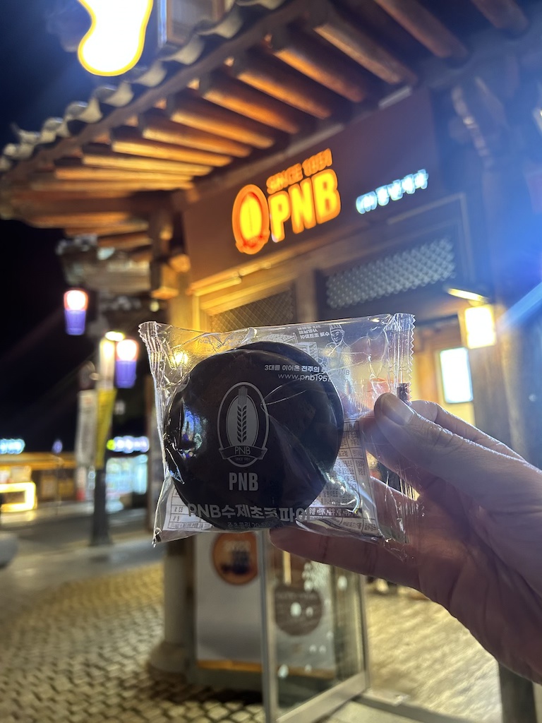We then, of course, stopped at the PNB Chocopie to pick up dessert before heading back to the Airbnb. Chocopie is a popular Korean cake/cookie consisting of two round cake slices, marshmallow filling, then covered in chocolate. I’ve had the grocery store chocopie before and thought it was ok – the chocolate covering was too thin and the filling too marshmallow-like. BUT PNB Chocopie is so tasty – the thick chocolate cover, the heavy cake slices and the marshmallow cream filling – absolutely perfect. They have different fillings and chocolate coverings as well, so lots of combinations to try. PNB Chocopie is originally from Jeonju, and the products are easy to find in Jeonju, but not so much outside of the city. I thought I would be able to buy some at the airport’s duty free to bring home to Canada, but I was disappointed when they were no where to be found. I will have to make sure I buy it from Jeonju directly next time!