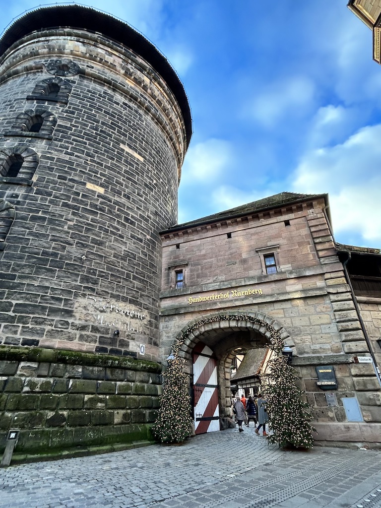 After breakfast, I packed my bags and started my walk to the Nuremberg Main Station. On the way, I walked past a medieval shopping area called Handwerkerhof Nuremberg, where you can find boutique shops and restaurants. It was too early for anything to be open, but this would have been a cute spot to visit in the afternoon.