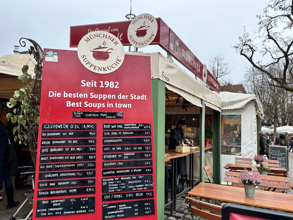 12:00pm: Have soup for lunch at Münchner Suppenküche (1 minute walk from Viktualienmarkt).