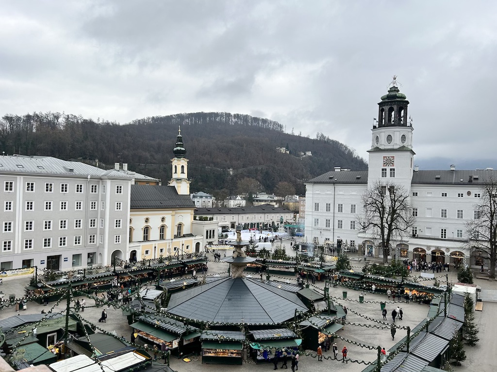 Afterwards, I walked to DomQuartier Salzburg, a museum of state rooms, artifacts, and art. On the way, I walked through the Residenzplatz (the main plaza), which was also the location of a Christmas Market. I also snapped a picture of the Salzburg Cathedral exterior.