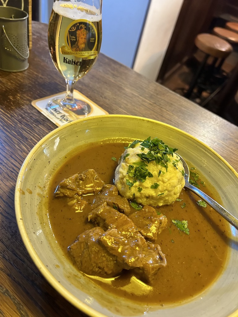 It was about lunchtime so I walked to Zwettler’s Wirtshaus and ordered a Kaiser Karl Weissbier (local beer) and a Kaiser Karl beer goulash. The beer goulash came with a gooey-soft dumpling, which was perfect for dipping in the sauce.