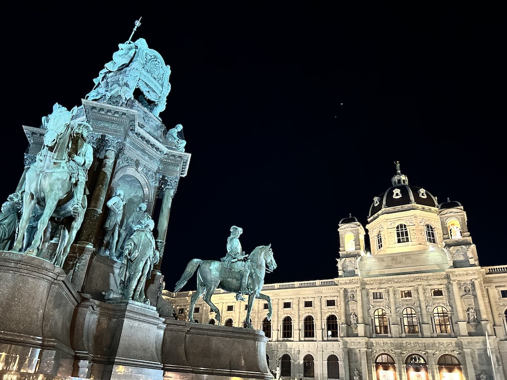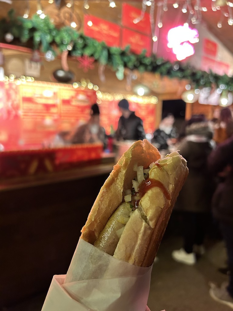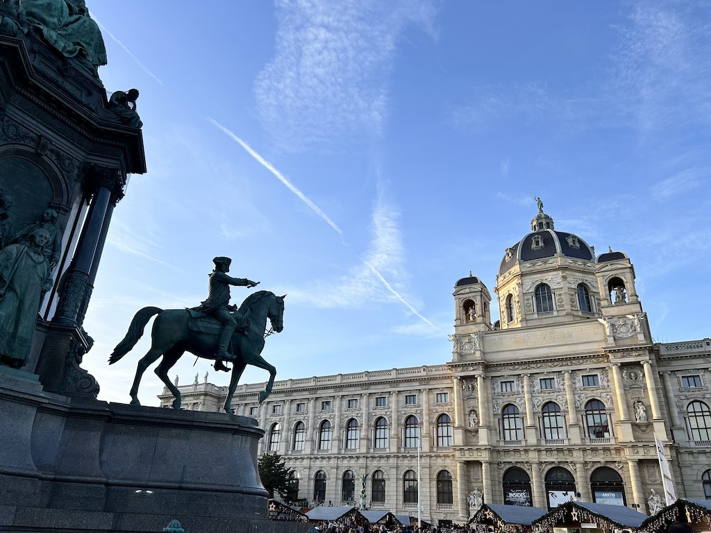 During the winter, a Christmas market opens up at the plaza with vendors selling boutique items and food. So after visiting the Kunsthistorisches Museum (it had become dark out), I wandered the stalls and bought a currywurst hot dog for dinner and hot berry punsch (mixed with red wine) to warm myself up.
