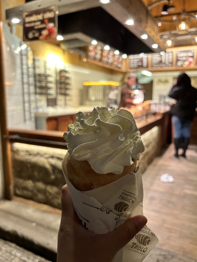 I had one last thing to check off my list before heading back to the hotel and that was to get a trdelnik for dessert. Trdelnik is a spit cake sprinkled with sugar and filled with cream. It was crispy and scrumptious, although I wished the cream was a bit sweeter. Ready to call it a night, I headed back to the hotel.