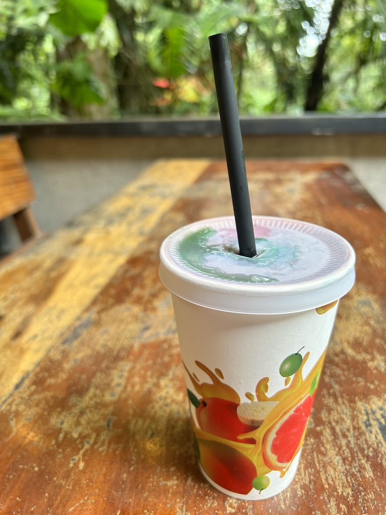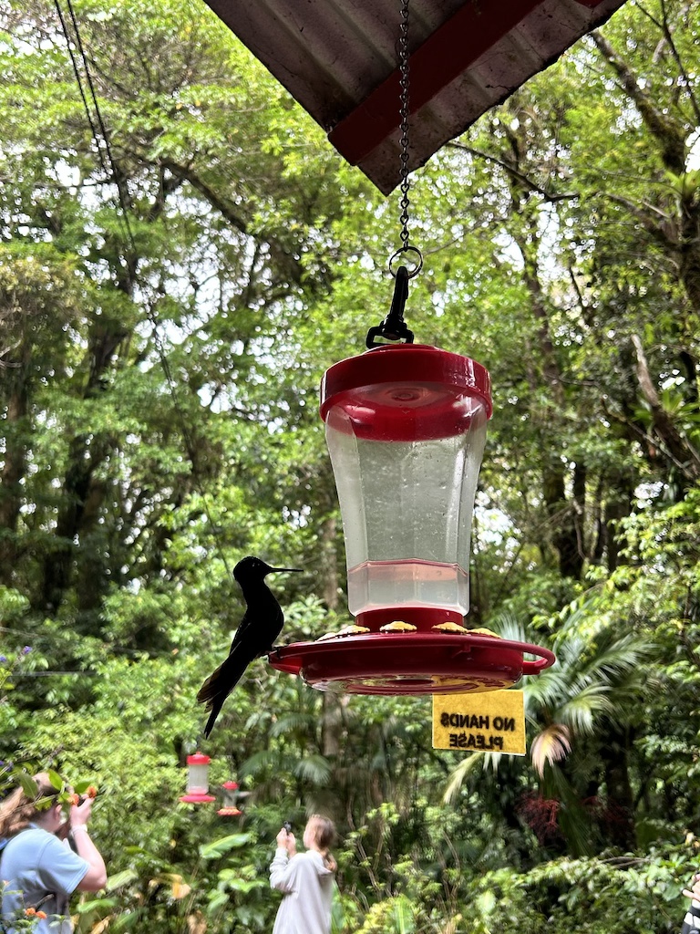 I spent about 2 hours wandering the forest before returning to its entrance. There was still time before the next bus came (~4pm), so I headed to the Monteverde Hummingbird Gallery. There is a cafe, gift shop, and hummingbird feeders. The hummingbirds were in full action flying from feeder to feeder. At the cafe, Cafe Colibri, I ordered a watermelon mint smoothie and waited for the bus.