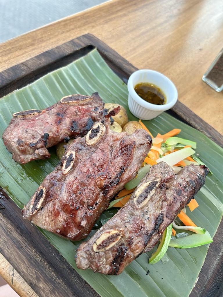 For dinner, I headed to the Treehouse Restaurante. The restaurant is a 3-floor building built around a tree. It’s a pricier restaurant in the area, but I wanted something close by. I ordered the mojito slushie and asado de tira con chimichurri. The mojito slushie was tasty, but it actually made me cold as the outdoor temperature had cooled down to the low twenties (°C). The asado de tira con chimichurri was delicious – perfectly cooked fatty beef short ribs on top of potatoes + vegetables with a side of chimichurri sauce.