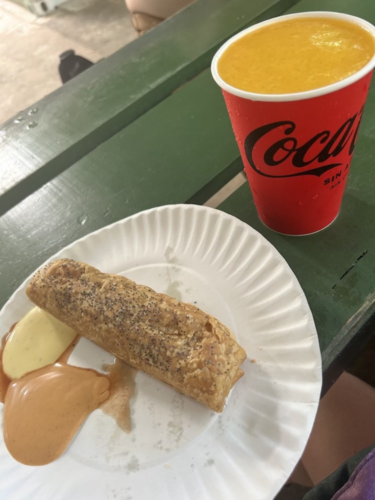 I was hungry so I headed to the cafeteria next for lunch. The cafeteria is fully fenced off due to the capuchins stealing people food. It is the only spot inside the park where you can get food. I ordered a beef sausage roll and a mango smoothie.