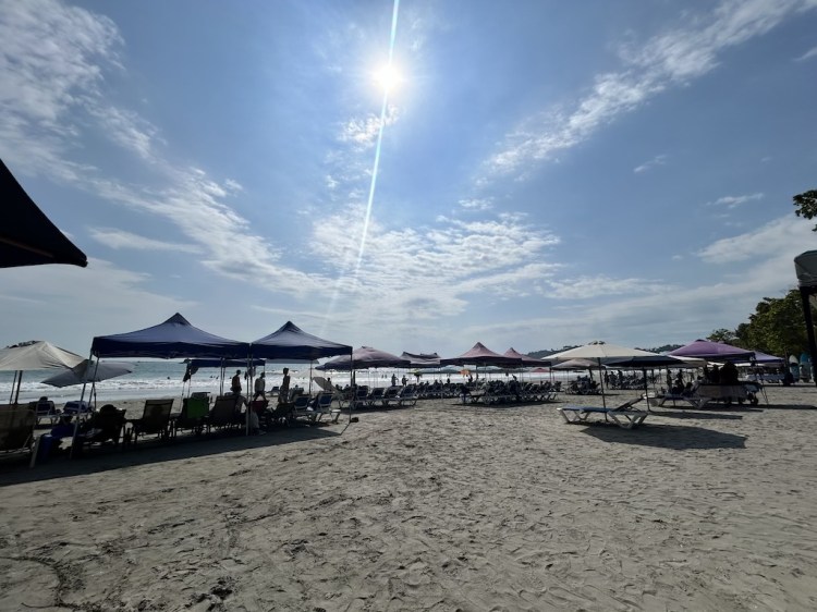 After a relaxing afternoon, I walked to the bus stop to catch it back to the hotel. The bus stop is just across from the Espadilla Beach. This beach was busy (it is public), with lots of people trying to sell beach activities (surfing lessons, snorkeling, beach chairs, etc.).