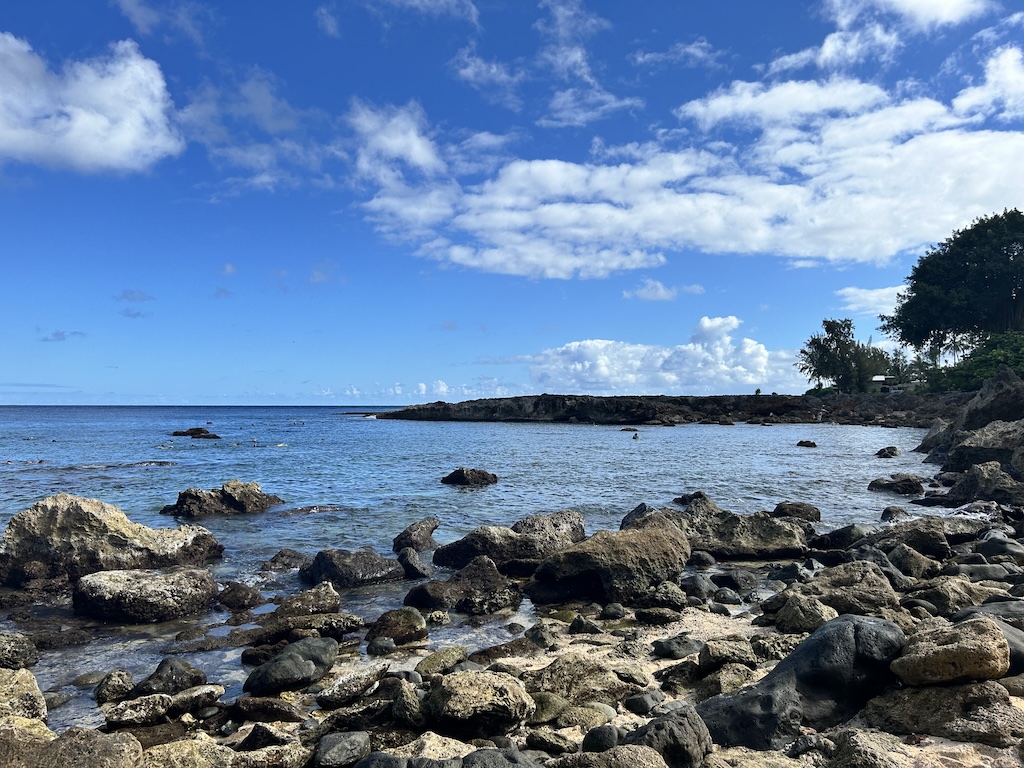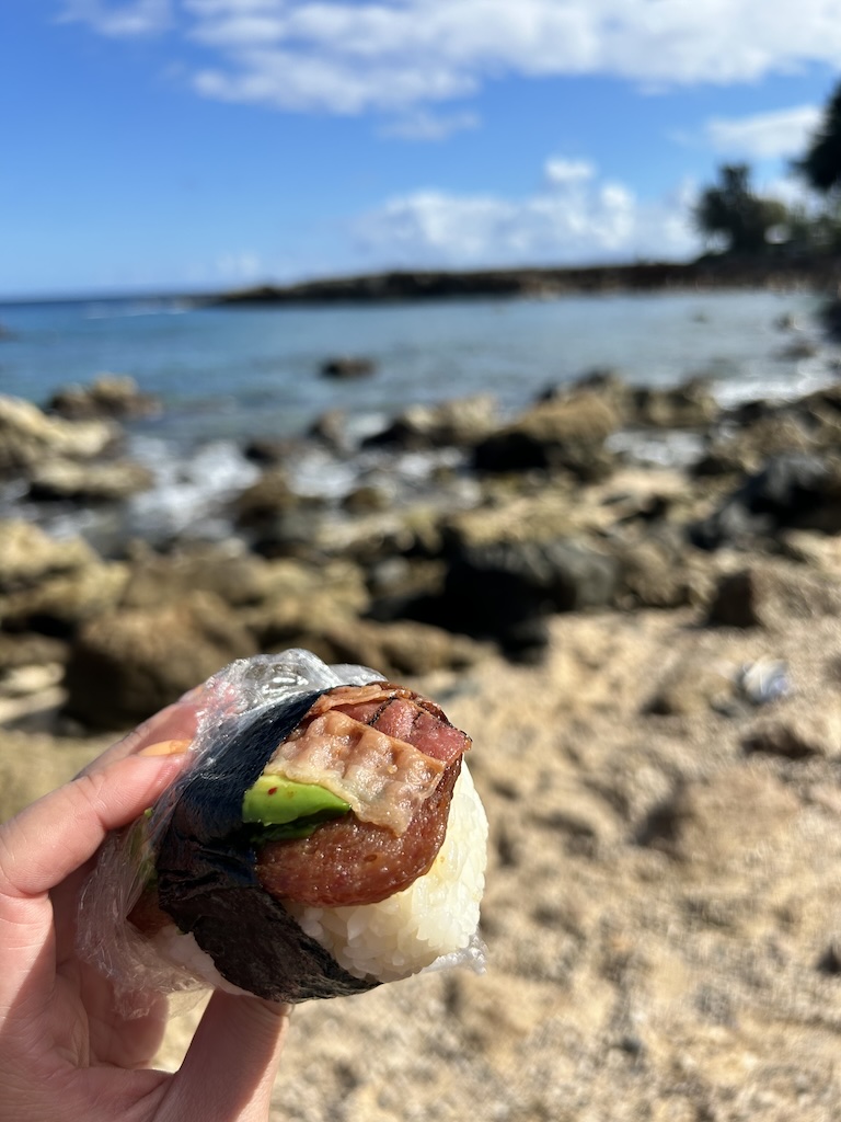 First destination for the day was Shark’s Cove for a snorkel. Someone from the group had picked up the snorkel rentals from Snorkel Bob’s the day before. Shark’s Cove is very rocky, so it is a good idea to bring water shoes. The water is rough close to the shore, but once you swim further out, it calms down. This is a good spot to see lots of different coloured fish. We also picked up spam musubi from Musubi Cafe Iyasume before heading out and ate it at Shark’s Cove. The bacon + avocado spam musubi was my favourite!