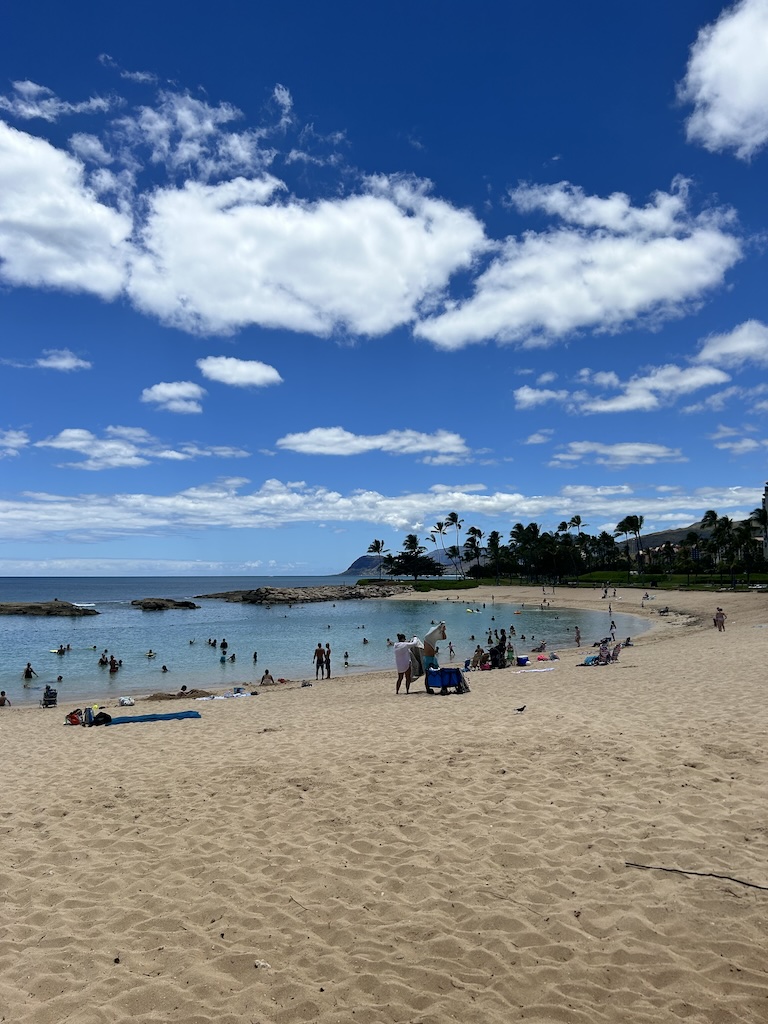 Next, we headed to Ko Olina Lagoons and spent the rest of the afternoon by the beach – relaxing and swimming. Ko Olina are man-made lagoons in a resort area of Honolulu. Some of the lagoons are private, but there are a few that are public (like the one we went to – Ko Olina Lagoon 4). There is limited free parking. A paid parking option is at the Ko Olina Marina ($22USD/day).