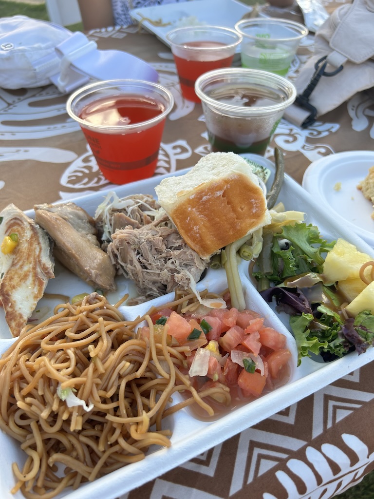 For the evening, we were headed to a Lu’au. So we headed back to the hotel to freshen up and then drove to Aloha Kai Lu’au. Aloha Kai is a sealife park during the day and the lu’au ticket also includes a visit to the sealife park (great option for families!). A lu’au is a Hawaiian feast/party with traditional music, arts and crafts, and tasty food and drinks. The central dish of any lu’au is the roasted pig, which is cooked in an underground oven. I also tried poi, a mashed taro dish that is a staple to Polynesian culture. I found this poi a bit bland (but the poi that I will eventually have the next morning was much better – more on that on Day 2!). There was a great selection of food at the lu’au and it was a great experience.